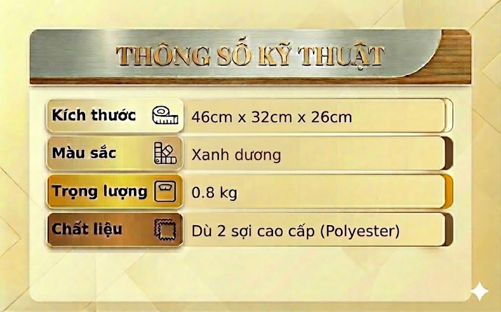 + Vải chính: Dù 2 sợi cao cấp (Polyester)
