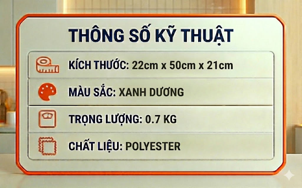 Sản phẩm có kích thước 22 x 50 x 21cm, với các ngăn trong túi được bố trí khoa học, giúp người dùng dễ dàng phân loại và tìm kiếm các vật dụng khi cần thiết.