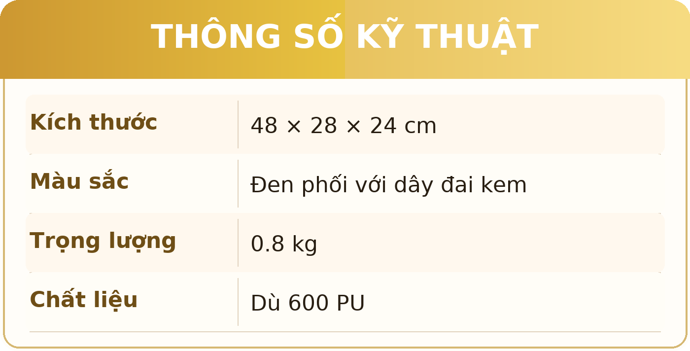 Với tông màu đen phối với những dây đai kem, balo dễ dàng kết hợp với nhiều loại trang phục khác nhau, phù hợp cho cả môi trường công sở, du lịch hay những chuyến phiêu lưu.