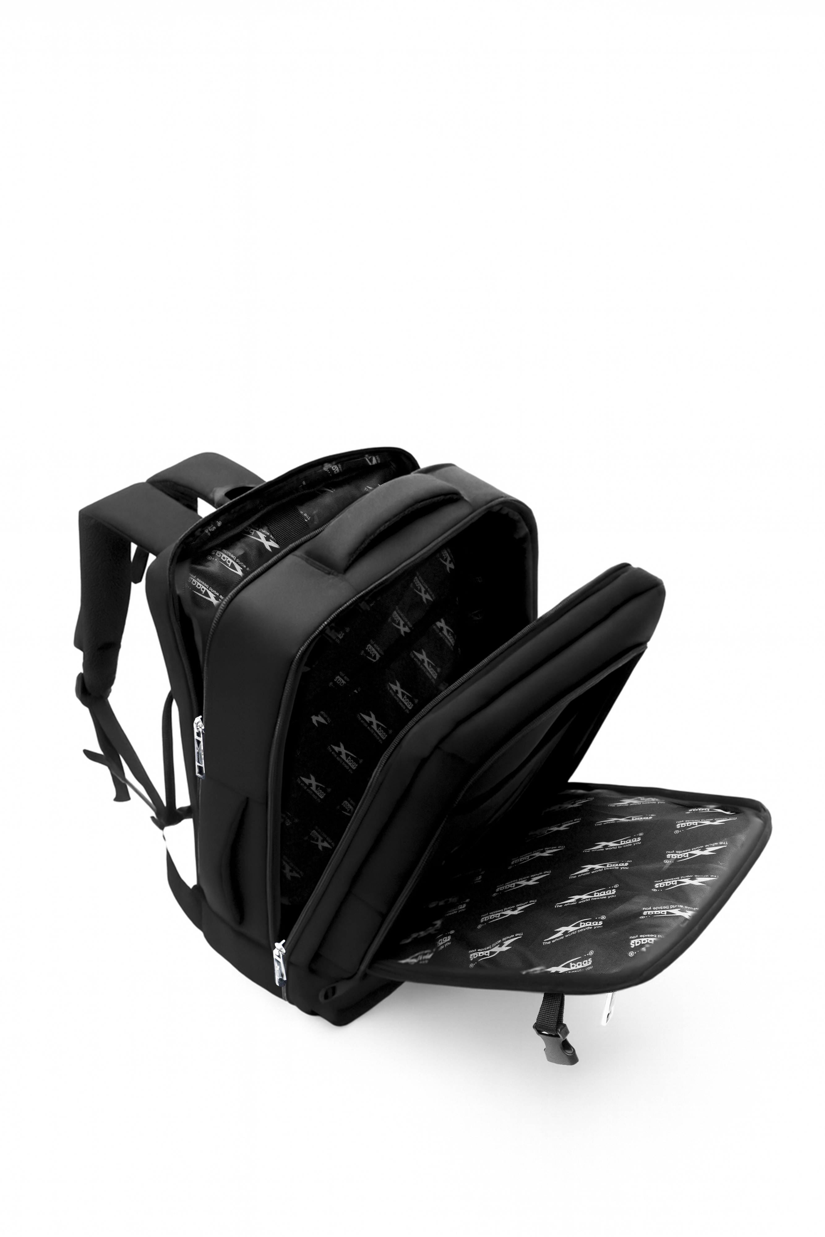 Bên trong balo được lót 210 in logo Xbags chắc chắn, tăng độ bền và giữ form ổn định. Hệ thống khoá kéo kim loại cao cấp chống gỉ tuyệt đối, vận hành mượt mà, đảm bảo độ an toàn và độ bền lâu dài theo thời gian.