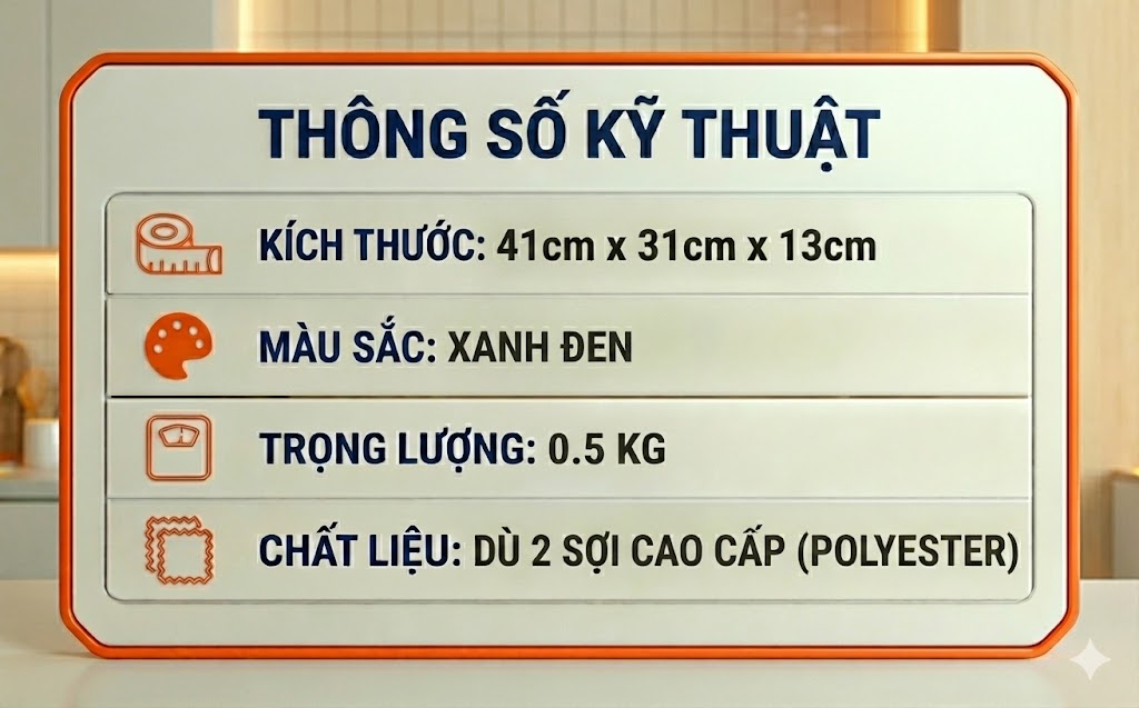 + Vải chính: Dù 2 sợi cao cấp (Polyester)