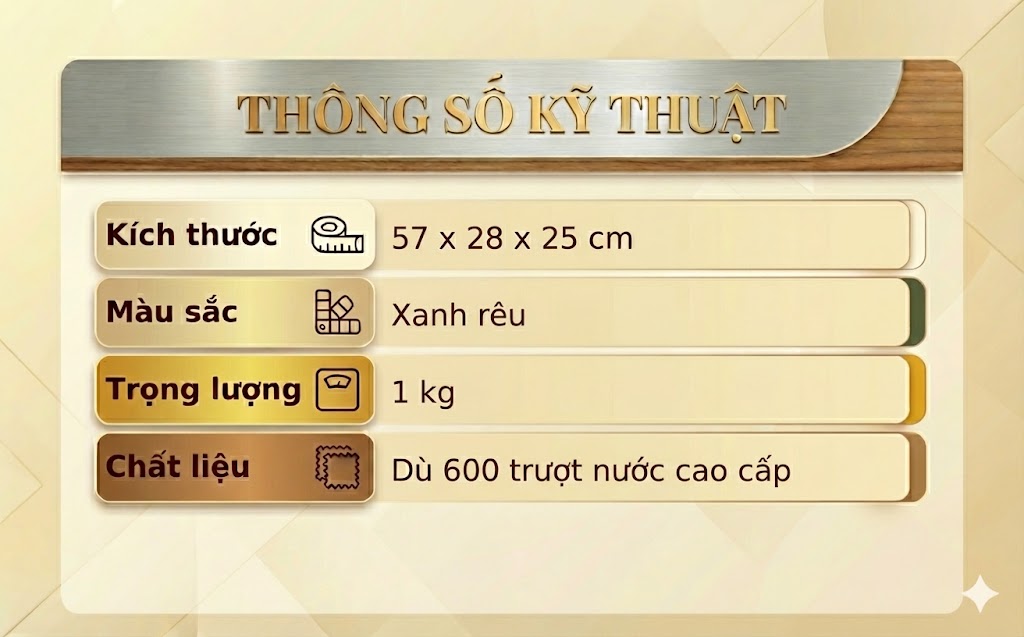 + Vải chính: Dù 600 cao cấp