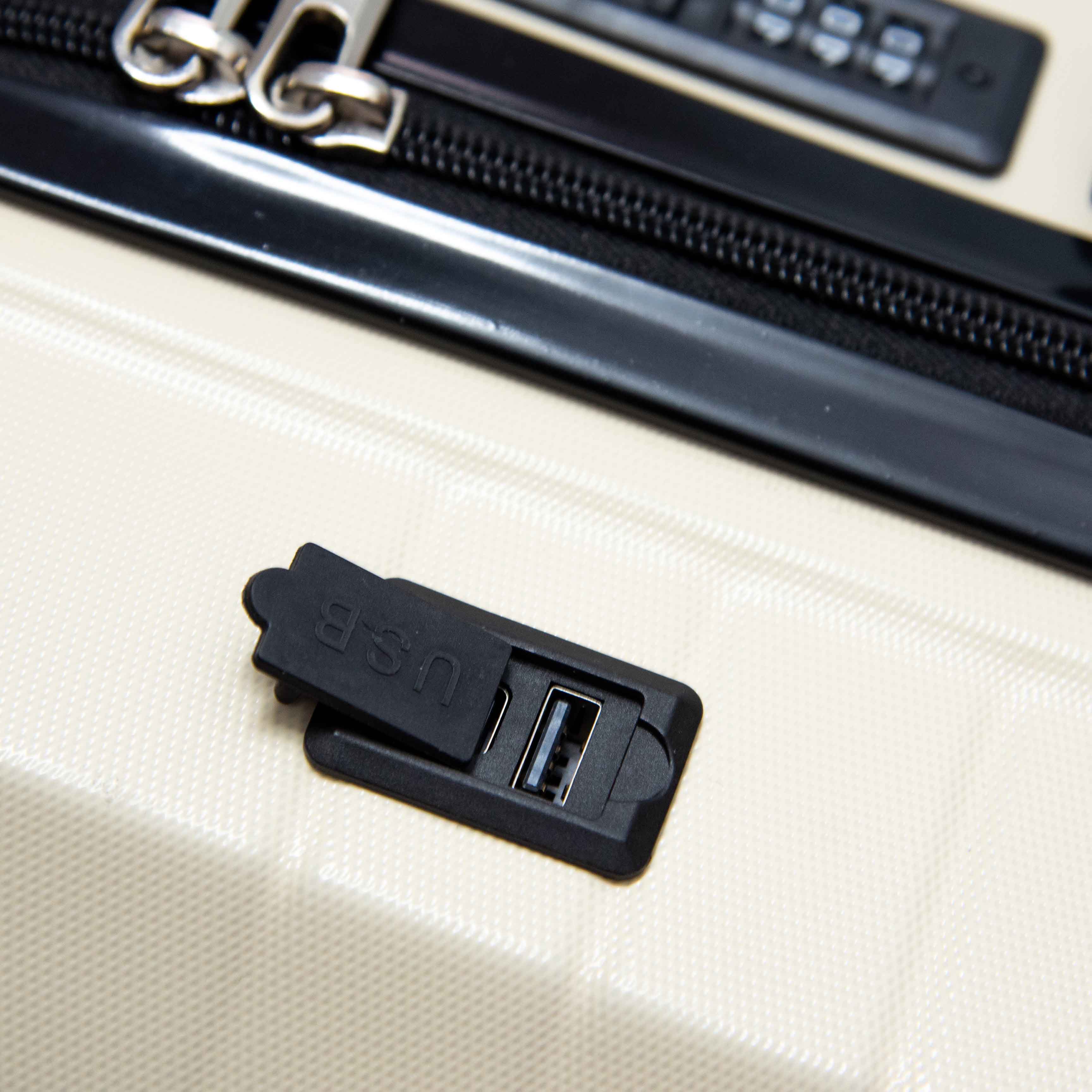 Cổng USB tạo sự tiện nghi và tăng tính hiện đại cho vali, phù hợp với nhu cầu công nghệ của người dùng hiện nay.