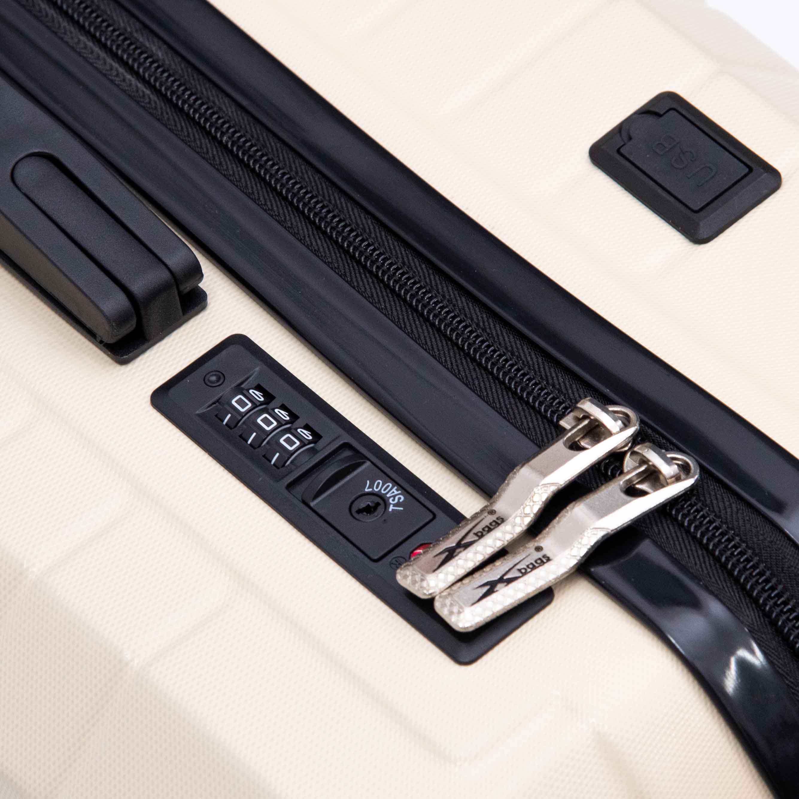 Vali kéo cao cấp Xbags được tích hợp sẵn khóa số TSA chuẩn an ninh hàng không quốc tế, thiết kế dạng khóa chìm, độ bảo mật rất cao, chống dò phá mật khẩu cực kỳ hiệu quả.