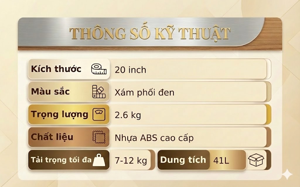 - Tải trọng tối đa của vali là 7-12 kg